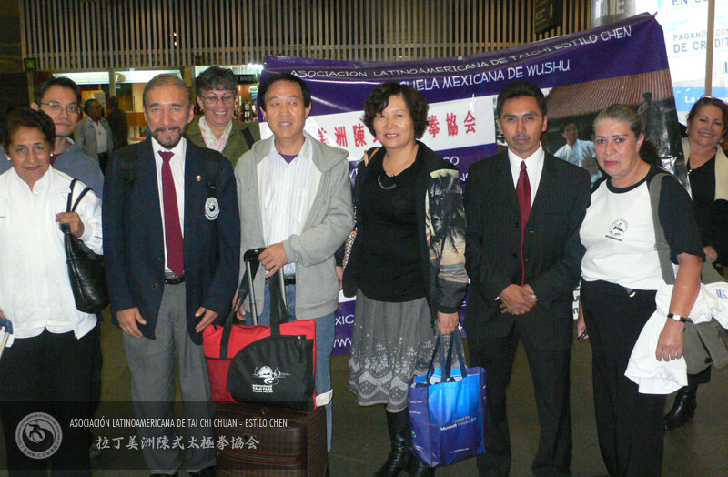 El Gran Maestro Chen Zhenglei y su esposa Shimu Lu Lili, arriban por primera vez al hermano país de México. Le dan la bienvenida El Maestro Juan Vásquez, el Profesor Agustín Martínez y parte de su equipo de apoyo.